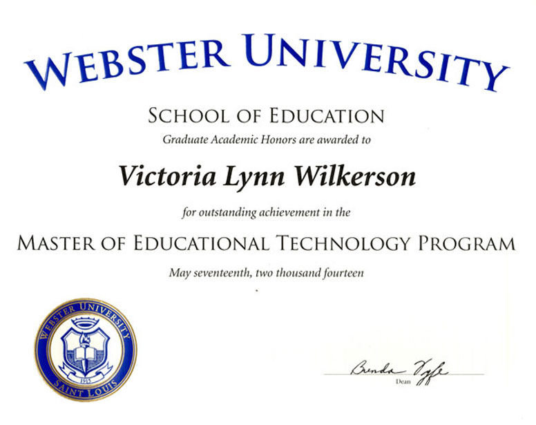 School of Education Graduate Academic Honors are awarded to students who achieved a high grade point average across the curriculum. I graduated with a 4.0 GPA with a Masters in the Educational Technology Program.